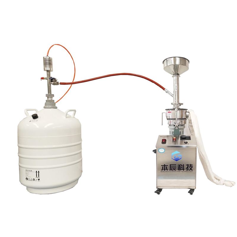 (12)液氮實時通入保證了整個粉碎過程在低溫環境下進行,出液量由閥門開啟角度控制,可操作性強,適應物料范圍廣。
